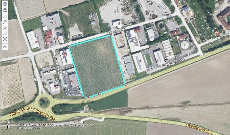Grunstück zu vermieten oder auf Baurecht im Gewerbegebiet Alkoven.